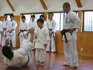 | 日曜日でなく文化の日ということもあり、参加した子供たち、父兄の方々も例年よりかなり少ないなか、今回は宇城先生のご子息の拓治師範がお越し下さり、演武会の最後に技をご披露いただき、また、子供たちにご指導をと、たいへん有意義な演武会となりました。