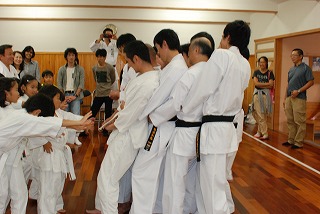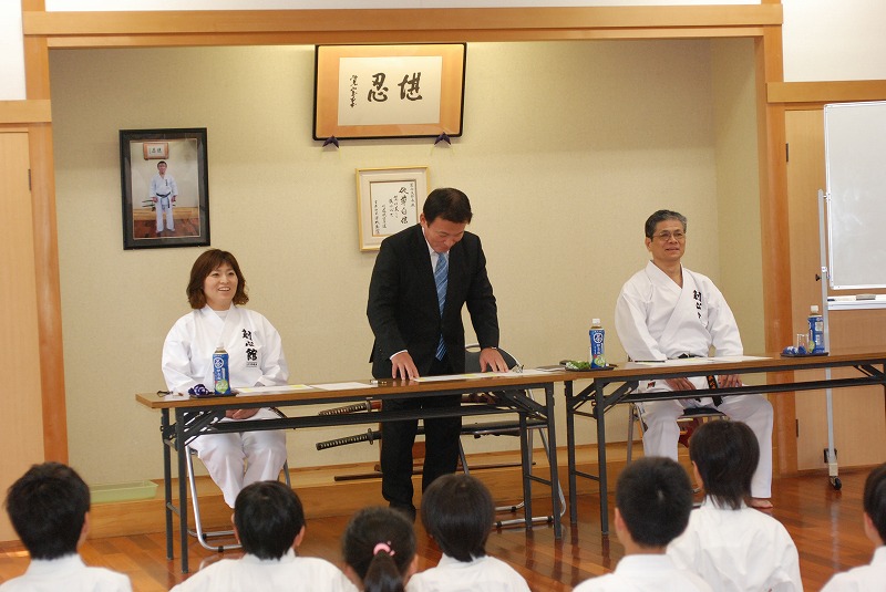 宇城先生が一瞬に子供たちの長所を見抜かれ、審査後の講習では、その長所をさらに引き出し子供たちには「自信・希望」を与えられ、そして数々の検証を通して父兄には正しい「躾・教育」の重要性を気付かせて下さいました。父兄にはとても厳しく聞こえたと思われますが、一方では大きな希望が湧くお話であったと思います。審査後に先生から「型も組み手も癖が無く良かった」とのおっしゃっていただき、少しは「宇城空手」の心を子供たちに伝える事ができたのかと嬉しく思いました。