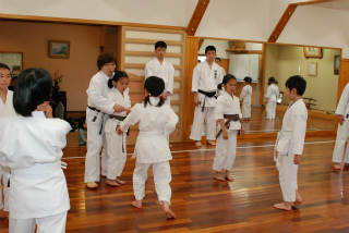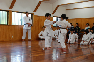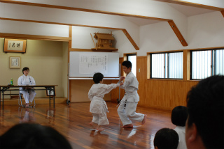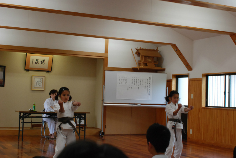ピーンと張りつめた空気の中、子供たちはのびのびと、しかし集中力を発揮しながら基本、型、組み手と審査科目をこなして行きました。ほぼ全員が、前日までの稽古の時とは見違えるような動きで、ふだん指導者として一緒に稽古に励む私自身が目を見張らされました。