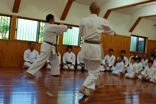 審査が始まると子供たちが前を見据え、基本、型、組み手といつも以上に鋭い空手を見せ、私も子供たちの潜在能力に驚かされましたし、宇城先生からも非常に良かったと、お言葉をいただきましたし、一般の塾生も生活に根付いた空手で良かったと、審査後の講評でお褒めの言葉をいただきました。